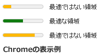 meter要素の内容は、この要素に対応していないブラウザ向けの代替コンテンツになります。