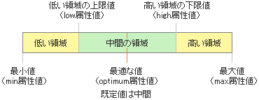 | optimum="" | 最適な値 | 数値 | この値により最適な領域も設定される(浮動小数点数、既定値は中間点) |