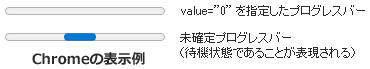value属性がないprogress要素は、進捗状況が確定していないことを表します。この場合、そのプログレスバーは未確定プログレスバーになります。