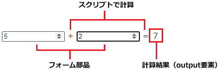 - あくまでも出力だけを目的とした要素なので、output要素の値(計算結果)がフォーム送信されることはありません。