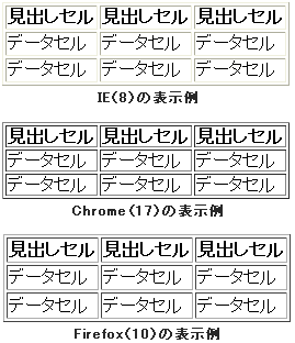 - ブラウザにより、境界線のスタイル(立体感、色の濃さ)は微妙に異なります。
